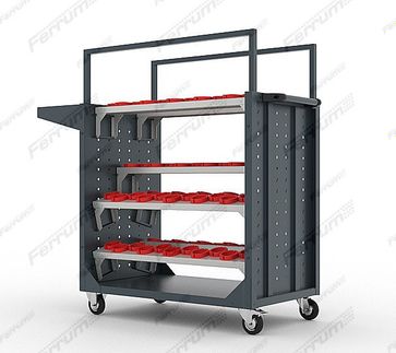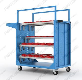 Тележка для инструментальной оснастки станков с ЧПУ 42.101 предназначена для транспортировки и хранения инструмента и оснастки на рабочем месте. Возможно оснащение различными комбинациями и расположением полок, что способствует оптимальной организации рабочего места с учетом специфики производства. Тележку дополнительно можно оборудовать полкой навесной и ограждениями. Шаг перфорации на боковых стенках позволяет устанавливать полки под оснастку, как в горизонтальном, так и наклонном виде.