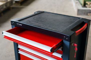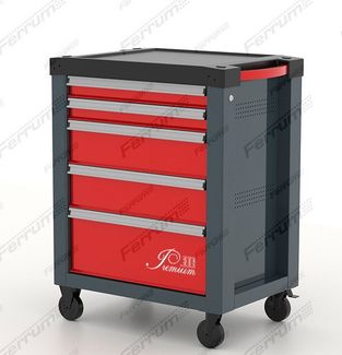 тип направляющих - телескопические, развернутый подшипниктип крепления направляющих - зацепвыдвижение ящика - 92 %ручки ящиков - алюминиевый профиль с возможность установки информационной вставки с защитной пленкойторцы ручек закрыты пластиковыми заглушкамизамок - центральный с блокировкой всех ящиковколичество ключей - 2 шт.цвет ключа - сигнально красныйсистема антиопрокидования – боковаядиаметр колес - 100 мм.комплект колес - 2 неповоротных, 1 поворотное, 1 поворотное со стопоромпокрытие колес – бензомаслостойкий термопластический каучукцвет колес – черный, цвет стопора колеса – сигнально красныйпокрытие рабочей поверхности тележки - крышка из ударопрочного пластика с боковым держателем отвертокполезный размер рабочей поверхности крышки (Ш х Г) – 525х475 мм.боковые стенки корпуса тележки с перфорацией для крепления держателей инструмента, крючков и прочих аксессуароврадиусная транспортировочная ручка – 1 шт.тележка дополнительно комплектуются полкой навесной, а так же перфорированной панелью, держателями инструмента, крючками и прочими аксессуарамитип покрытия - порошковое эпоксидно-полиэфирное с высокой механической, атмосферной стойкостьюцвет, RAL – 7016; 7016/3000; 3000; 5015. Тележка инструментальная с 5 ящиками следующих размеров: