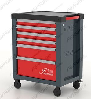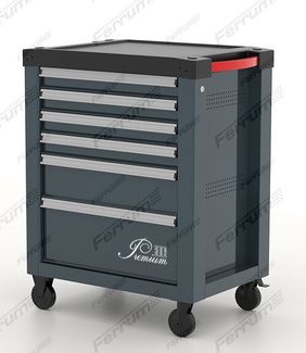 тип направляющих - телескопические, развернутый подшипниктип крепления направляющих - зацепвыдвижение ящика - 92 %ручки ящиков - алюминиевый профиль с возможность установки информационной вставки с защитной пленкойторцы ручек закрыты пластиковыми заглушкамизамок - центральный с блокировкой всех ящиковколичество ключей - 2 шт.цвет ключа - сигнально красныйсистема антиопрокидования – боковаядиаметр колес - 100 мм.комплект колес - 2 неповоротных, 1 поворотное, 1 поворотное со стопоромпокрытие колес – бензомаслостойкий термопластический каучукцвет колес – черный, цвет стопора колеса – сигнально красныйпокрытие рабочей поверхности тележки - крышка из ударопрочного пластика с боковым держателем отвертокполезный размер рабочей поверхности крышки (Ш х Г) – 525х475 мм.боковые стенки корпуса тележки с перфорацией для крепления держателей инструмента, крючков и прочих аксессуароврадиусная транспортировочная ручка – 1 шт.тележка дополнительно комплектуются полкой навесной, а так же перфорированной панелью, держателями инструмента, крючками и прочими аксессуарамитип покрытия - порошковое эпоксидно-полиэфирное с высокой механической, атмосферной стойкостьюцвет, RAL – 7016; 7016/3000; 3000; 5015. Тележка инструментальная с 6 ящиками следующих размеров: