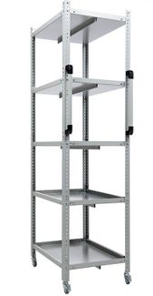 Быстрая и лёгкая сборка Толщина металла стоек 1,5 мм (стойка MS HARD 185) Пять прокатных регулируемых по высоте полок Две эргономичные ручки Нагрузка на тележку 150 кг (по 30 кг на каждую полку) Четыре поворотных колеса 50 мм (два со стопором) Под каждую полку можно установить выдвижной ящик для тележки Garage None