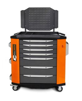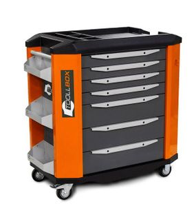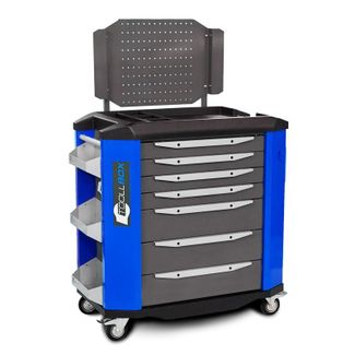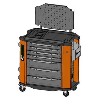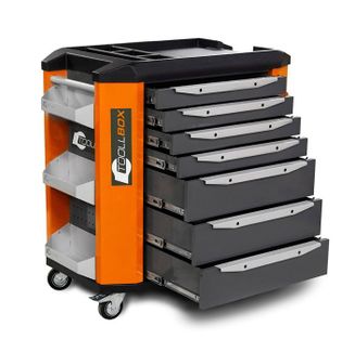 усиленный корпус тележки инструментальной серии ToollBox premium изготовлен из 1,5 мм стали и стальной профильной трубы 30х30 мм. Размер корпуса по высоте позволяет разместить максимально 10 выдвижных ящиков
