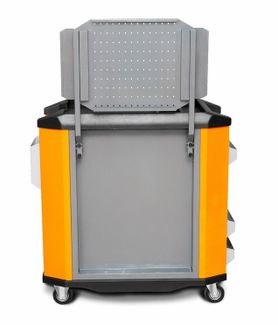 верх корпуса закрывается пластиковой крышкой с ячейками для размещения мелких предметов. В нижней части тележки по периметру имеется пластиковый обвес для защиты от ударов при перемещениях тележки