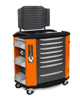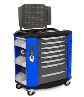усиленный корпус тележки инструментальной серии ToollBox premium изготовлен из 1,5 мм стали и стальной профильной трубы 30х30 мм. Размер корпуса по высоте позволяет разместить максимально 10 выдвижных ящиков