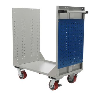Тележка инструментальная WDS HARD предназначен для хранения и оперативного перемещения оснастки на производственных предприятиях; комплектуются удобной ручкой и поворотными резиновыми колесами, одно колесо снабжено стояночным тормозом (диаметр колес- 100 мм); максимальная нагрузка на тележку- 400 кг; возможность комплектации полками с отверстиями для инструмента размерами SK 40 и SK 50; полки устанавливаются горизонтально и под наклоном 20°; на полку можно установить 14шт SK 40, 6шт SK 50; пластиковые держатели идут в комплект полки; большегрузные поворотные колеса с износостойкой шиной из полиуретана, обод выполнен из чугуна и оснащен смазочным ниппелем, в конструкции применен сварной оцинкованный кронштейн, толщина которого составляет 6 мм. В оси установлен роликовый подшипник; поставляются в разобранном виде; цена тележки указана без полок; возможность установить дополнительные аксессуары аксессуары; цвет: серый полуматовый (RAL 7038); тип покрытия: порошковое. None