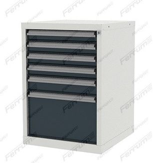 Ящик 460 х 460 х 62 h мм - 4 шт.Ящик 460 х 460 х 83 h мм - 1 шт.Ящик 460 х 460 х 283 h мм - 1 шт.Тип направляющих - телескопические, развернутый подшипникТип крепления- зацепВыдвижение ящика - 100 %Ручка ящика -алюминиевый профиль с информационной вставкойЗамок - центральный с блокировкой всех ящиковКоличество ключей - 2 шт.Система антиопрокидования совмещена с центральной системой запиранияТип покрытия - порошковое эпоксидно-полиэфирноеЦвет, RAL - 7001/7016; 5015