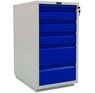 телескопические направляющие; нагрузка на ящик 30 кг. центральный ключевой замок Практик цвет: корпус RAL 7038, лицевая панель ящиков RAL 5002 None