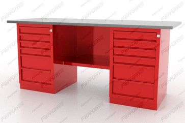 Верстак двухтумбовый 01.266L окрашен глянцевым порошковым покрытием, обеспечивающим прекрасный внешний вид и простоту в уходе
