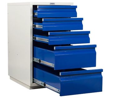 - WD5 - тумба укомплектована 5-ю выдвижными ящиками, ящики открываются на телескопических направляющих