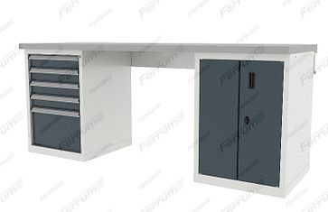 Верстак двухтумбовый 41.32105 окрашен глянцевым порошковым покрытием, обеспечивающим прекрасный внешний вид и простоту в уходе. Верстак оснащен: