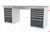 Столешница - фанера 43 мм покрыта оцинкованным кожухом толщиной 1,5 мм. Возможна комплектация верстака другими типами столешниц Тумба 1: ящик 460 х 460 х 83 h мм - 4 шт./ящик 460 х 460 х 283 h мм - 1 шт. Тумба 2: ящик 460 х 460 х 62 h мм - 4 шт./ящик 460 х 460 х 83 h мм - 1 шт./ящик 460 х 460 х 283 h мм - 1 шт. Тип направляющих - телескопические, развернутый подшипник Тип крепления- зацеп Выдвижение ящика - 92 % Ручка ящика -алюминиевый профиль с информационной вставкой Замок - центральный с блокировкой всех ящиков Количество ключей - 2 шт. Оснащен поперечной балкой Тип покрытия - порошковое эпоксидно-полиэфирное Цвет, RAL - 7001/7016; 5015