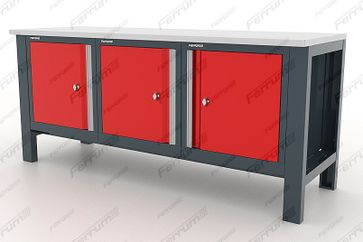 - тумбой "Premium" с дверью и полкой - 3 шт. Конструкция верстака рамная Тип покрытия - порошковое эпоксидно-полиэфирное Цвет, RAL - 7016;7016/3000;7016/5015 Текстура краски - глянец
