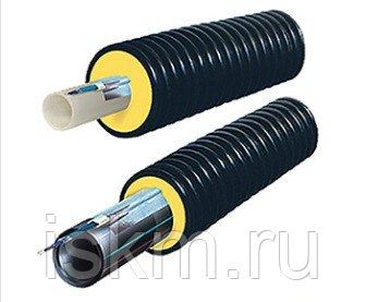 ТВЭЛ-ПЭКС-2. Гибкий трубопровод в двухтрубном исполнении, пенополиуретановой изоляции. Давление P = 10 бар (SDR 7,4) для тепловых сетей с температурным графиком 95/70 °С (пиковая температура t = 110°С).