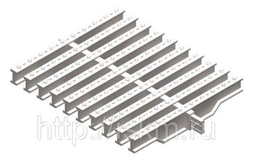 Ширина данной решётки составляет 195 мм, высота 22 мм. В одном погонном метре содержится 43 модуля.
