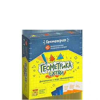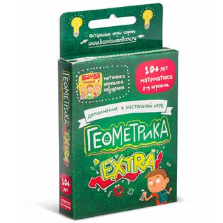 Набор дополнительных карт к базовому комплекту "Геометрики". С ним любимая игра станет интереснее, разнообразнее и сложнее. В "Геометрике EXTRA" новые карты с фигурами и их признаками. Фигуры можно добавить все сразу. "Разбавлять" колоду карт с признаками рекомендуем постепенно: в правом нижнем углу на картах штрихом отмечена степень сложности – от одного до трёх. В новом наборе используется материал по геометрии для средней школы, поэтому рекомендованный возраст игры – от 10 лет. В расширенном наборе появляются специальные карты: "Замени все фигуры!", "Набирай по новой!", "Бери по две!", — благодаря им игра стала более острой и неожиданной. Ещё одно нововведение — на некоторых картах с фигурами появились пунктирные линии — это вспомогательные построения (биссектрисы, медианы, диагонали). Они способствуют расширению понятийного аппарата геометрии и углублённому изучению свойств фигур. Как и в базовой игре, в Геометрике EXTRA есть описание всех терминов геометрии из игры, а прозрачная карточка-транспортир с линейкой помогает разрешить спорные ситуации мирным научным способом. Использовать "Геометрику EXTRA" отдельно от базового набора не получится. None