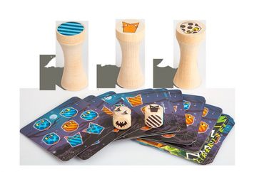 Коты и совы — любимые животные ведьм. Бедняги так часто подвергаются магическим экспериментам, что подчас не сразу отличишь, кто перед нами — кот или сова. В этой потрясающе оформленной игре дети учатся моментально определять количество, не пересчитывая. В игровом процессе тренируется внимательность, концентрация и скорость реакции, активно работает память. В коробке по сути три игры, которые тренируют различные навыки. В игре несколько уровней сложности для детей разных возрастов. Карты, кубики и тотемы оформлены ярко и необычно, это очень нравится детям! None