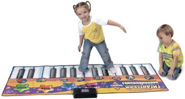 Напольный синтезатор представляет собой гибкий коврик с сенсорными контактами и электронным блоком управления. Синтезатор имеет 24 клавиши и 4 различных режима работы: "Игра"; "Запись"; "Воспроизведение"; "Демо". Воспроизводит звуки 8 музыкальных инструментов фортепиано, саксофон, скрипку, аккордеон, трубу, арфу, ксилофон или гитару. Можно прослушать мелодии 10 песен, записанных в память синтезатора. В режиме "Запись" вы можете записать в память до 80 нот, а потом их прослушать. Синтезатор легко складывается и удобен при переноске и хранении. Дети легко обучаются обращению с ним, а мелодии и песни, которые он позволяет воспроизводить, способствуют развитию творческого музыкального самовыражения. None