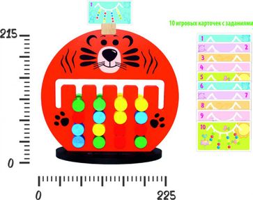 Жизнерадостный ярко-оранжевый "Тигренок" сможет стать отличной игрушкой для детей дошкольного возраста — и позволит провести время вместе не только весело и занимательно, но и с пользой. В комплекте Фигура "Тигренок" Подставка Карточки с заданиями Внутри игрушки пролегают шесть прорезей — четыре подлиннее и две покороче. В них встроены цветные фишки, которые можно двигать, выстаивая из них определенные цветовые комбинации. Какие именно — подскажут карточки с заданиями, которые входят в комплект игры. В заданиях разработчики учли особенности детей от 2 до 7 лет, а потому задания тщательно выверены — они не слишком сложные, но и не такие простые, а чтобы справиться с ними ребенку предстоит приложить определенные интеллектуальные усилия. Чтобы не забыть задание во время игры, можно будет закрепить карточку на голове тигренка — там для этого предусмотрено специальное место. Производитель позаботился об удобстве — фигура стоит в надежной подставке, а рисунок на нее нанесен с двух сторон, да и сами фишки двухсторонние. Поэтому в сложных ситуациях, родители смогут дать совет своему чаду. Игрушка позволяет не только развить мелкую моторику, но и научить ребенка просчитывать возможные варианты, а также разовьет его логическое мышление. Сделан "Тигренок" из хороших пород дерево (липа, ель) и окрашен акриловыми красками — яркими и жизнерадостными, но при этом безопасными для здоровья. None