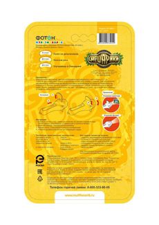 С помощью этого фонарика можно не только освещать себе путь, но и смотреть, сочинять, рассказывать увлекательные истории о новых захватывающих приключениях команды Смешариков. Истории с любимыми персонажами из анимационного полнометражного фильма "Смешарики. Легенда о Золотом Драконе" порадуют не только детей, но и взрослых поклонников. Проекционный фонарик с кассетами "Фотон" показывает цветные истории по принципу диапроектора. Включает в себя 3 кассеты с цветными историями по 8 кадров каждая. В фонарике "Крош" 3 удивительные истории: "Полет на дельтапланах", "Опасная река", "Улучшайзер и Смешарики". Фонарь проецирует цветное изображение на поверхность с расстояния от 0,3 до 4 м. Без кассет работает как обычный фонарик. "Ножки" позволяют ставить фонарик на горизонтальную поверхность или использовать его в качестве ночника; имеется кольцо для крепления кассет. Батарейки входят в комплект (2 штуки, тип AAA/LR03). Длина фонарика 145 мм. None