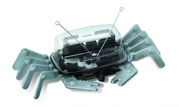 Роботы — удивительнейшее изобретение человечества. Хотите ближе с ними познакомиться? А собрать одного из них? Почему бы и нет! Ведь в наборе от 4М есть все, что необходимо для создания настольного робота. Забавная игрушка умеет ловко перемещаться по столу, обходя края и не падая. Как ей это удается, вы узнаете из научно-познавательного конструктора "Настольный робокраб". Перед тем, как приступить к работе, внимательно прочтите инструкцию. Запаситесь терпением, скоро в доме появится личный робот. А главное, его соберет ваш ребенок. Прикрутив последний винт, юный роботехник сможет вдоволь повеселиться, наблюдая за акробатическими трюками своего изобретения. Просто фантастика, робокраб так смешно шевелит клешнями и ходит боком! Совсем как настоящий! Конструктор от 4М — это кладезь полезных навыков. Он развивает аккуратность и усидчивость, пытливость ума и воображение, расширяет кругозор и стимулирует интерес к науке. Полезней и увлекательней игрушки не найти! В комплекте 8 ног 1 прозрачная крышка с винтом и шайбой 1 двигатель с корпусом 2 винта 1 корпус батареи 2 оси 2 шестерни Металлическая проволока-антенна с двумя наконечниками Подробная инструкция на русском языке Требуются маленькая крестовая отвертка и 1 пальчиковая батарейка АА, в комплект не входят. Как работает робокраб? Батарейка является источником питания для мотора. Она вырабатывает энергию, которая заставляет мотор быстро крутить ротор (червячное колесо). Вращательное движение передается трем шестеренкам, которые замедляя скорость, поворачивают ролики. Шасси робокраба состоит из двух ведущих роликов и одного колеса, расположенного под прямым углом и не касающегося стола. Когда робот доходит до края, ролики опускаются, позволяя третьему колесу касаться стола. Оно поворачивает "краба", пока ролики не вернуться обратно на стол. Кулачковый механизм двигает клешни и ноги из стороны в сторону, имитируя движения настоящего краба. Если робот случайно упадет со