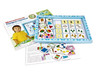 "Пифагорики № 2" — вторая ступень серии игр на развитие математического и логического мышления "Пифагорики", предназначена для детей старше 4 лет. Набор из 60 магнитных карточек позволяет в наглядной форме преподнести ребенку первые знания о математическом счете, запомнить первые три цифры, основные фигуры и цвета радуги. Игра знакомит детей с понятием "узкий-широкий", учит сравнению предметов. На занятиях ребенок научится соотносить цифру с соответствующим количеством предметов. В приложенной инструкции вы найдете несколько вариантов игр, которые непременно будут интересны малышу. Если использовать также карточки комплекса "Пифагорики № 1" можно разнообразить занятие играми на ассоциации, научить ребенка находить сходства и отличия предметов, распределять их по группам. Магнитные карточки можно двигать по полю и менять местами, передвигая карточки, ребенок запоминает материал в динамике, учится самостоятельно подбирать подходящую к заданию карточку. Игры с "Пифагориками" — прекрасный способ развить образное восприятие и научить ребенка логически мыслить. None