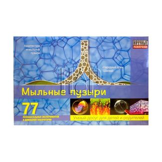 77 опытов с мыльными пузырями Набор посвящен исследованию мыльных пленок и пузырей. При всей простоте, вы увидите совершенно необычные явления. Вместе с ребенком вы узнаете — каким образом мыльные пузыри применяют в архитектуре, физике и химии. Как мыльные пузыри помогают решать глубокие математические задачи? Какое практическое применение мыльных пузырей? Набор подходит для проведения дополнительных занятий и в школе и дома. Чему научится ребенок? В результате совместной игры с набором "Мыльные пузыри" Вы создадите лист Мебиуса, мост из пены и нарисуете оригинальную картину пузырями. А гигантские мыльные пузыри еще никого не оставляли равнодушными! В комплекте Концентрат мыльного раствора Круглая кювета Трубка гибкая толстая Трубка гибкая тонкая Пластиковые трубочки Проволока Нить хлопковая Воронка Стаканчики большие и маленькие Пипетки Бумага черная, белая, красная и зеленая Зажимы и предметные стекла Надувной шар Набор из шести рамок Металлический шарик Свеча Палочки-зубочистки Скотч Косточка Пробирка Пластилин Теннисный шарик Пористый коврик Глицерин Гайка и скрепки Список опытов (сокращенно) Приготовление мыльного раствора. Пузыри, пленки и свойства водной поверхности: пускаем пузыри листом бумаги, фокус с монетами, пленка на воде. Вода и поверхностное натяжение: формирование капли, шарик на воде, пленки на плоских рамках. Удивительные эксперименты с пузырями: цепь из мыльных пузырей, пузырь внутри пузыря, мыльная рамка, пересечение мыльных пленок, мыльный батут, гигантские и крошечные пузыри. Атмосферное давление в пузырях: давление в пузыре и его размеры, соединяем пузыри, мыльный купол, огромная мыльная пленка. Долговечность мыльных пленок: мыльных пузырь теряет шляпу, жизненный путь пузыря, мыльная пленка и заряженные предметы, мыльный пузырь в холодильнике. Исследуем пену: как образуется пена, структура пены, пузыри как строительные блоки, бесконечная пена. Ми