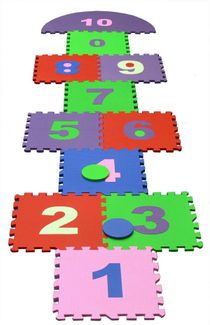 Старая добрая игра в классики! Удобная сумочка позволит беспрепятственно играть как на улице, так и в домашних условиях. Развивающий мягкий пол изготовлен из экологически безопасного полимера. Яркие детали выкладываются на полу, развивая у ребенка память, логическое мышление и моторику рук, знакомя его с основами арифметики. Коврик-пазл очень практичен: он компактен, легко моется и не впитывает влагу. Пусть ваш малыш наслаждается теплом, комфортом и безопасностью. Конструкция и расцветка коврика ориентирована на особенности маленького ребенка: контрастный фон и четкие силуэты развивают зрительное восприятие и концентрацию внимания. Конструкция пазла способствует развитию мелкой моторики, логики, способностей конструирования, творческого воображения. Изображения и расцветки могут служить учебным пособием. Все фигурки легко вынимаются, их размер удобен и безопасен, они могут быть отдельными игрушками. Коврик с легкостью можно собрать в кубик. Мягкий пол имеет отличную теплоизоляцию, создает эффект "теплого пола". Ребенок в любое время года может ходить по такому покрытию босиком, сидеть или лежать на нем. Обладает шумоизоляционными свойствами. Устойчив к бытовой химии и влаге. Легко чистится и моется в домашних условиях. Элементы не надо приклеивать к поверхности, что ускоряет сборку/разборку. Травмобезопасное, покрытие достаточно мягкое, чтобы смягчить падение ребенка. Из чего изготовлен мягкий пол? Этиленвинилацетат (ЭВА, EVA) — вспененный микропористый полимер, высоко упругий эластичный легкий материал. Экологически безопасный, не токсичный, не имеет запаха. Качество продукции подтверждено сертификатами. None