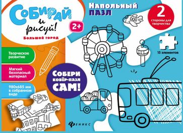 Напольный коврик -пазл Собирай и рисуй - зто двусторонний пазл с крупными деталями, удобными для детских ручек, который собира ют преимущественно на полу из за достаточно больших размеров. Детали таких детских ковриков -пазлов достаточно крупные для того, чтобы их могли использовать в игре совсем маленькие дети.Коврик-пазл Собирай и рисуй не просто коврик и не просто пазл. Это oгpoмная раскраска с одной стороны и многоразовое поле для рисования - с другой. Специальное покрытие позволит ребенку рисовать и писать бесконечное множество раз, ведь следы фломастера легко стираются с поверхности пазла и можно писать снова и снова, все лучше и лучше! None