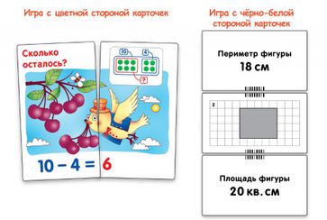 Комплект занимательных карточек "Математика" поможет родителям и педагогам правильно организовать интересную и познавательную игру, в ходе которой ребенок освоит навыки устного счета. Комплект "Математика" включает в себя 6 наборов из 48 цветных карточек с предметными картинками, схемами-моделями, опорными таблицами и тестовыми заданиями. None