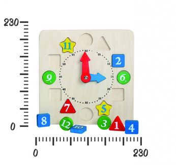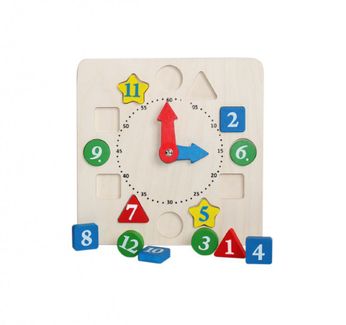 Многофункциональные часики познакомят детей с понятием времени. На циферблате по кругу расположено 12 фигур-вкладышей, отличающихся между собой формой и цветом. В игре малыши познакомятся с цифрами, различными геометрическими фигурами, научатся считать до 12, самостоятельно устанавливать часы и минуты. Такая игровая деятельность способствует тренировке логического мышления, развитию внимания и зрительной памяти, усидчивости, укреплению мелкой моторики рук. Минимальная сумма заказа 500 руб.