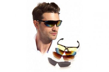 - Очки спортивные солнцезащитные с 5 сменными линзами в чехле, черные (Sport Sunglasses, black) по выгодной цене 913 р. руб.;