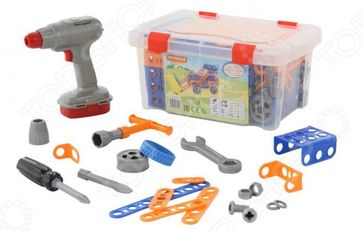 Конструктор игровой POLESIE Погрузчик и шуруповерт . Количество элементов: 142 шт позволит малышу почувствовать себя настоящим автомехаником и конструктором спецтехники! Набор состоит из 142 элементов: соединительные детали различной длины с отверстиями; гайки, шурупы и болты; инструменты отвертка со сменными насадками, комбинированный и торцевой гаечные ключи. Игрушечные инструменты в наборе помогают надежно скрепить детали между собой. Также их можно использовать в других играх, связанных с домашним бытом, ремонтом или строительством. Миниатюрные инструменты помогут ребенку освоить навыки обращения с настоящей техникой. В этом ему, конечно, помогут родители. Для маленьких конструкторов Детали изготовлены из пластика высокого качества. Шуруповерт работает от 2 батареек типа АА входят в комплект . С помощью инструментов детали надежно прикручиваются друг к другу и собираются в различные модельки. Игрушки получаются функциональными у них есть подвижные элементы колеса у автомобилей, крылья у мельницы . Это делает игру еще более увлекательной. Элементы набора станут удобным пособием для изучения цветов и форм, размеров предметов. Конструктор упакован в контейнер с крышкой, которая закрывается на боковые зажимы. Малышу точно понравится процесс сборки. Он не только увлекательный, но и полезный развивает моторику рук и дарит новые для ребенка тактильные ощущения. Развивает логическое и пространственное мышление. None Возможен самовывоз. Есть доставка.
