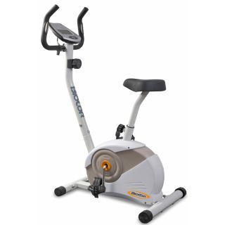 При выборе модели велотренажера (велоэргометра) обращайте внимание не только на дизайн, количество программ и ценовую стоимость, но и на росто-весовые характеристики. Каждая модель позволяет заниматься человеку с ростом выше среднего, тем не менее не забывайте об индивидуальной комфортности.Велотренажер BioCor 43211 с механической регулировкой нагрузки и магнитной системой торможения, благодаря которой и прочному ремню привода обеспечивается плавность хода и комфорт тренировки, ее бесшумность.ХАРАКТЕРИСТИКИ:1. Вес маховика данной модели – 5 кг. Чем больше вес маховика, тем более плавный ход у модели и переключение нагрузки без резких перепадов.Для того, чтобы изменить уровень сопротивления педалей, Вы крутите специальный регулятор, расположенный на стойке велотренажера. Выберите от 1 до 8 уровней. 2. Дисплей жидкокристаллический. Монохромный. Не располагайте модель велотренажера под прямым попаданием солнечных лучей. 3. На дисплее отображаются данные по: speed (скорости)/rpm (числу оборотов маховика в минуту), time (времени), distance (дистанции), calorie (калориям), pulse (пульсу). Все значения можно задать кроме скорости и числа оборотов маховика в минуту. По истечении установленных значений будет издаваться звуковой сигнал.Дополнительно после тренировки Вы можете использовать программу RECOVERY (Оценка восстанавливаемости после тренировки). При помощи данной программы согласно значениям на дисплее, Вы можете оценить насколько быстро величина Вашего пульса приходит в норму.Пульс считывается с датчиков измерения пульса, когда две ладони плотно прижаты.4. Руль можно вращать на 360° при помощи специального регулятора. 5. Полиуретановое сиденье регулируется по высоте при помощи специального регулятора, который частично откручивается, а затем оттягивается от стойки сиденья. 6. Максимальный вес тренирующегося – 120 кг.7. Для перемещения модели достаточно наклонить ее на себя, находясь спереди тренажера, велотренажер будет перемещаться при помощи колесик