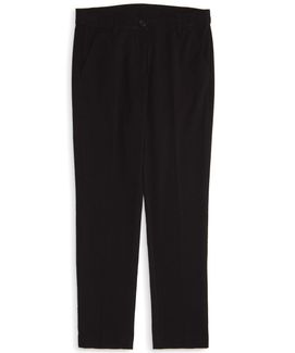 Отличные брюки для мальчика, брючины прямого кроя со стрелками, боковые карманы, имитация прорезных карманов сзади, застежка-молния. Прекрасное решение для школы в сочетании с пиджаком или рубашкой этой серии.