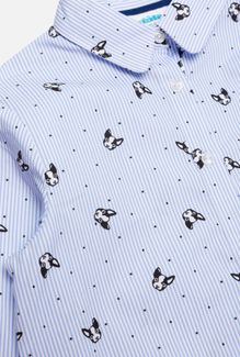 Блузка Acoola - стильная модель с отложным воротничком и длинным рукавом, изготовленная из натуральной хлопковой ткани. Изделие застегивается на пуговицы, имеет разрезы по бокам, удлиненную спинку, скругленный нижний край, кокетку со складками на спинке. Декоративный принт в виде мелкого горошка и изображений собачек приведет в восторг юных модниц. Минимальная сумма заказа 1500 руб. Возможен самовывоз. Есть доставка.