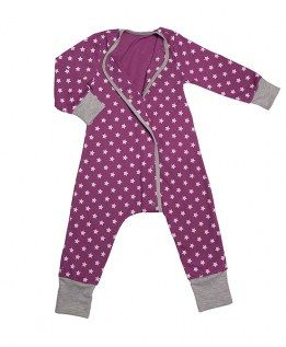 Пижама Bambinizon Звездное небо скроена как комбинезон, уникальная особенность её - это удлиненная застежка на кнопках, позволяющая легко и быстро сменить ребенку подгузник или посадить на горшок, не снимая комбинезон полностью. Подросшие малыши смогут сами расстегнуть кнопки. Пижама изготовлена из натуральной мягкой ткани, фиолетовый цвет с принтом из звездочек подойдет девочке. Минимальная сумма заказа 1500 руб. Возможен самовывоз. Есть доставка.