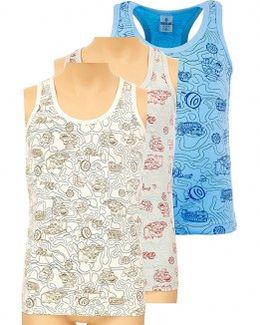 Майка Baykar для мальчика выполнена в трёх цветах с принтом весёлых машинок. Форма - классическая, материал - трикотаж. Минимальная сумма заказа 1500 руб. Возможен самовывоз. Есть доставка.