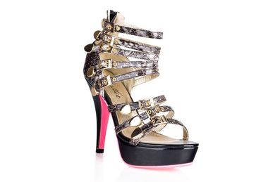 Босоножки из искусственой кожи с принтом под змеиную шкурку. Размер каждого ремешка регулируется с помощью золотистых пряжечек. Застегиваются босоножки на молнию сзади. Каблука и платформа обтянуты глянцевой искусственной кожей. Высота платформы 3,5 см, высота каблука 12,5 см. None Возможен самовывоз. Есть доставка.