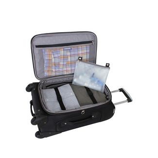 Устойчивость к износу. Чемоданы изготовлены из высококачественного и устойчивого к износу полиэстера. Прочная конструкция, легкий вес. Корпус чемодана выполнен из прочного полиэстера и отличается небольшим весом. Чемодан на 35 л весит всего 3,8 кг. Регулируемая телескопическая ручка с фиксатором. Выдвижная алюминиевая ручка фиксируется в нескольких положениях одним нажатием кнопки и облегчает процесс перемещения чемодана. Прочные ручки для переноски. Три прочные и эргономичные тканевые ручки в верхней и боковой частях чемодана облегчают его поднятие и перемещение. Максимальная организация размещения багажа. Увеличение объема. Чемодан имеет вместительное отделение для вещей с прочными ремнями для фиксации. Вместимость чемодана может быть дополнительно увеличена на 5 см. Удобные отделения для документов и мелких вещей. Съемная водонепроницаемая косметичка и сетчатый карман на молнии открывают быстрый доступ к вещам первой необходимости, а также средствам индивидуальной гигиены, которые всегда должны находиться под рукой. Два вместительных кармана на молнии, расположенные на лицевой стороне чемодана, предназначены для хранения важных документов и вещей. Высокая маневренность. 4 колеса под цвет корпуса дополняют стиль чемодана. Способные вращаться на 360 градусов, они обеспечивают максимальную маневренность.