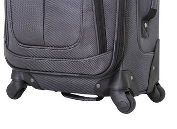 Устойчивость к износу. Чемоданы изготовлены из высококачественного и устойчивого к износу полиэстера. Прочная конструкция, легкий вес. Корпус чемодана выполнен из прочного полиэстера и отличается небольшим весом. Чемодан на 90 л весит всего 5 кг. Регулируемая телескопическая ручка с фиксатором. Выдвижная алюминиевая ручка фиксируется в нескольких положениях одним нажатием кнопки и облегчает процесс перемещения чемодана. Прочные ручки для переноски. Три прочные и эргономичные тканевые ручки в верхней и боковой частях чемодана облегчают его поднятие и перемещение. Максимальная организация размещения багажа. Увеличение объема. Чемодан имеет вместительное отделение для вещей с прочными ремнями для фиксации. Вместимость чемодана может быть дополнительно увеличена на 5 см. Удобные отделения для документов и мелких вещей. Съемная водонепроницаемая косметичка и сетчатый карман на молнии открывают быстрый доступ к вещам первой необходимости, а также средствам индивидуальной гигиены, которые всегда должны находиться под рукой. Два вместительных кармана на молнии, расположенные на лицевой стороне чемодана, предназначены для хранения важных документов и вещей. Высокая маневренность. 4 колеса под цвет корпуса дополняют стиль чемодана. Они вращаются на 360 градусов, обеспечивая максимальную маневренность.