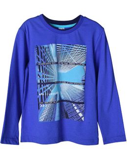 Лонгслив Crockid Небоскребы синий - стильная футболка с длинным рукавом и большим принтом.