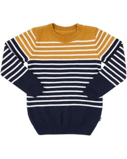 Джемпер Crockid Полоска горчично-синий - базовая трикотажная модель с круглой горловиной и эластичными манжетами. Для детей от 2 до 8 лет. Минимальная сумма заказа 1500 руб. Возможен самовывоз. Есть доставка.