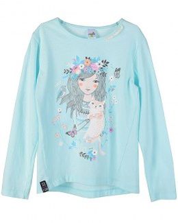 Голубой лонгслив для девочки торговой марки "Crockid" спереди декорирован оригинальным принтом девушки. Изделие из однотонного супрема, длинные втачные рукава, по горловине кант и вязаное кружево, боковые швы смещены на полочку, низ спинки оформлен длиннее полочки, жаккард по низу. Минимальная сумма заказа 1500 руб. Возможен самовывоз. Есть доставка.