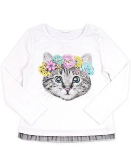 Белый лонгслив для девочки торговой марки "Crockid" спереди декорирован оригинальным принтом в виде милой кошечки. Изделие из супрема с лайкрой, длинные втачные рукава, по горловине кант, по низу оборка из сетки, жаккард в боковом шве. На плече расположена застежка на две кнопки. Минимальная сумма заказа 1500 руб. Возможен самовывоз. Есть доставка.