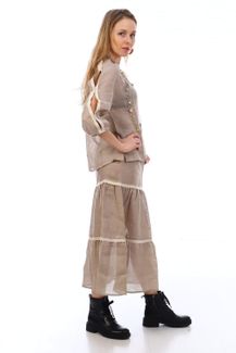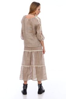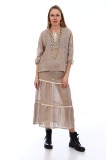 Фэшн комплект изо льна - блуза + юбка - Изидора | песочный