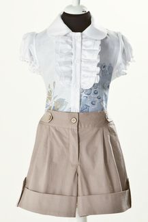 Шорты бежевые для девочки Fleole изготовлены из натуральной ткани нейтрального цвета. Подойдут под любой верх. За счет манжет и шлевок шорты смотрятся стильно и модно. Минимальная сумма заказа 1500 руб. Возможен самовывоз. Есть доставка.