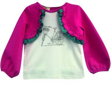 Кофта для девочки Fleole с декоративным болеро. Изготовлена из молочного трикотажа интерлок, украшена оригинальным принтом и ярким декоративным болеро. Сзади застежка на пуговицу. Минимальная сумма заказа 1500 руб. Возможен самовывоз. Есть доставка.