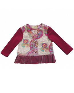 Сиреневый жакет Fleole для девочки с трикотажными рукавами и рюшью по низу изделия. 100 хлопок. Минимальная сумма заказа 1500 руб. Возможен самовывоз. Есть доставка.