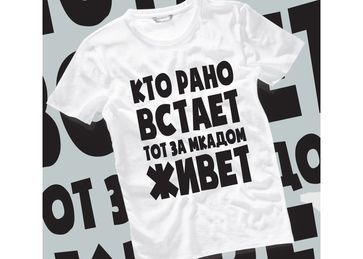 Закажите Футболка кто рано встает, тот за мкадом живет у компании Март Мания в России на портале Alloy:
