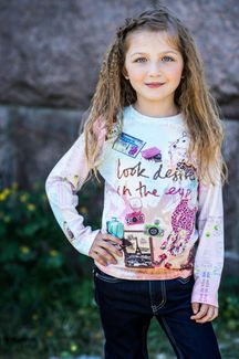 Джемпер для девочки Desire I love to dream - комфортная модель выполненная из тонкой вискозы. Подойдет маленькой кокетке, которая мечтает о путешествиях и прочих стильных штучках помады, парфюм, туфельки на каблуках . Материал изделия приятный и мягкий на ощупь, гипоаллергенный. Минимальная сумма заказа 1500 руб. Возможен самовывоз. Есть доставка.