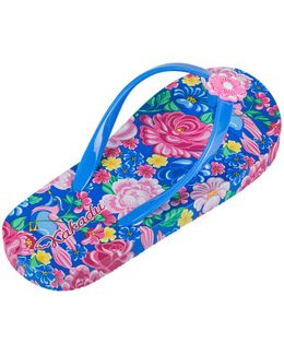 Шлепанцы для девочки Цветы синие Kakadu - яркая модель для пляжа и бассейна. Минимальная сумма заказа 1500 руб. Возможен самовывоз. Есть доставка.